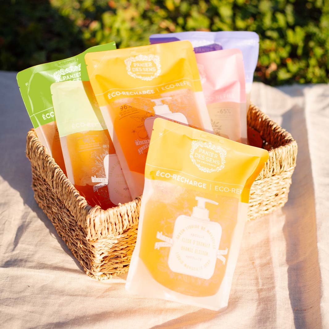 Ecológicos y económicos, estos recambios dan una segunda vida a sus botellas y limitan los residuos domésticos con un 65% menos de plástico que la botella inicial.
